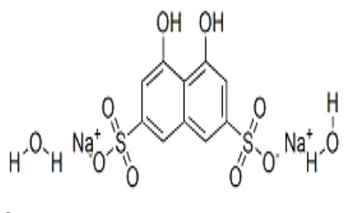 Synonym Name:Chromotropic acid disodium salt dihydrate; CHROMOTROPIC ACID DISODIUM SALT;disodium chromotropic acid;sodium 1,8-dihydroxynaphthalene-3,6-disulfonate; sodium 4,5-dihydroxynaphthalene-2,7-disulfonate dihydrate