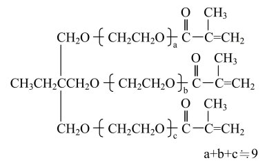 SINOMER® EO9-TMPTMA,chemical name is 9 moles Ethoxylated Trimethylolpropane Trimethacrylate,which is a trifunctional trifunctional methacrylate monomer containing ethoxy groups with low skin irritation, good flexibility,good adhesion,good wettability.